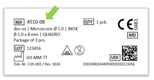 Die Produkt-REF ist auf dem Produktetikett zu finden, wie im folgenden Beispiel zu sehen ist.